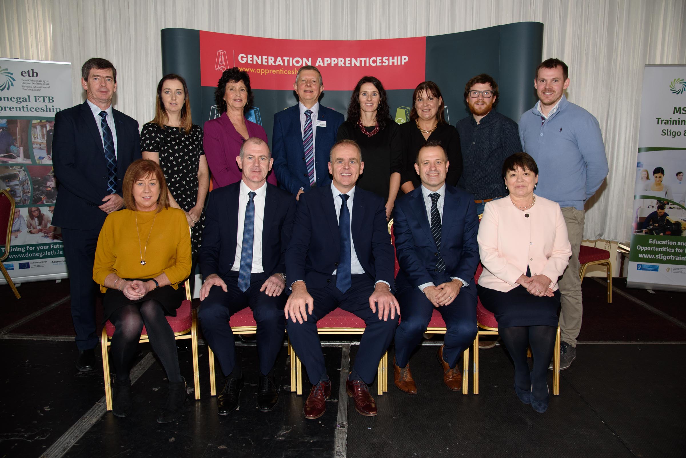 MSLETB apprentice graduates with Members of the MSLETB Training Centres team pictured with Joe McHugh TD Minister for Education and Skills, Mr Tom Grady CE MSLETB, Mr Andrew Brownlee CEO SOLAS and Eamon Scanlon TD.